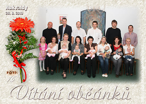 V sobotu dne 26. 6. 2010 přivítala v obřadní síni Obecního úřadu Hukvaldy starostka obce p. Jaroslava Michnová naše nejmladší občánky do svazku obce Hukvaldy. Pozvání přijalo celkem 8 dětí. Jsou to: Antonín Tobola, František Marhevský, Amálie Wantulová, Ingrid Bůžková, Nina Klosíková, Valentýna Šebestová, Agáta Šugárková a Václav Satola.